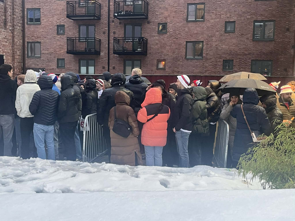 Long kø til upphitingarstaðið í Oslo