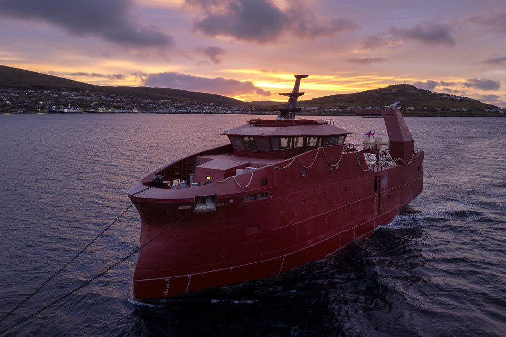 Skrokkurin til frystitrolaran til Varðan kom á MEST í morgun