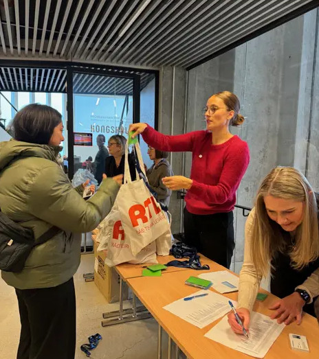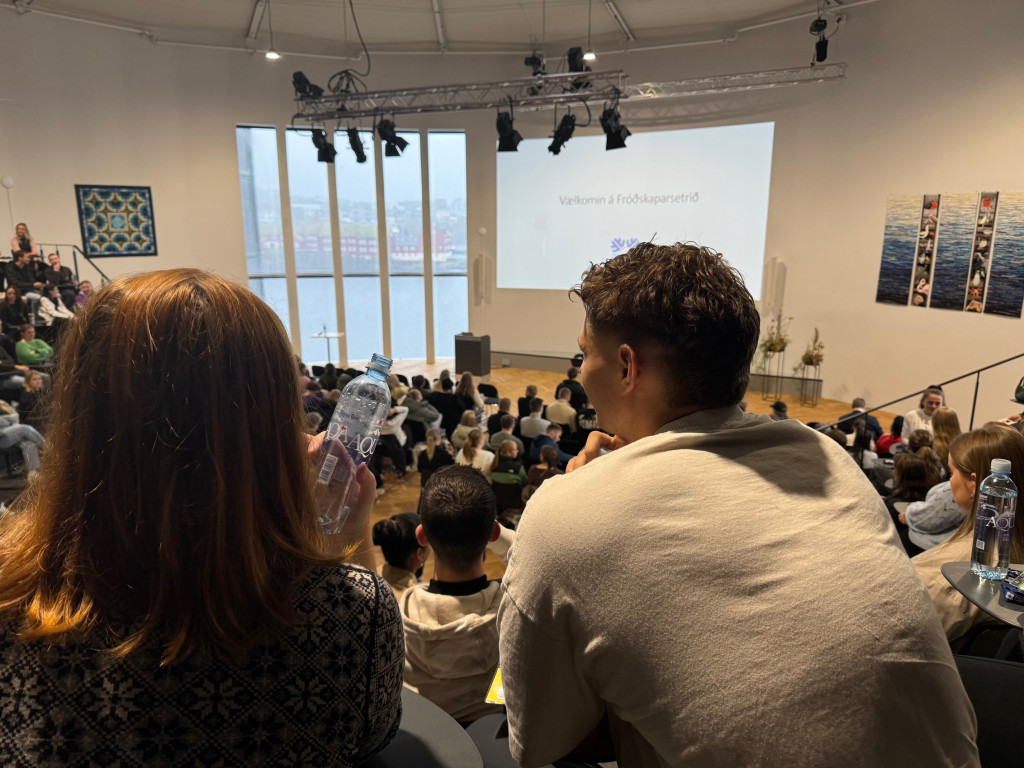 Innleiðsludagur í Kongshøll á Fróðskaparsetri Føroya í august í fjør. Her eru tað starvsfólk á Lestrarskrivstovuni, sum taka ímóti og skriva nýggj lesandi inn
