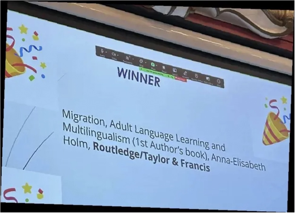 BAAL Book Prize verður á hvørjum ári latin "framúrskarandi bók á nýtslumálvísindaliga økinum", og bókin hjá Annu-Elisabeth Migration, Adult Language Learning and Multilingualism: Critical Sociolinguistics Research with New Speakers of Faroese var ein av tilsamans fýra bókum, sum vóru í uppskoti at vinna.