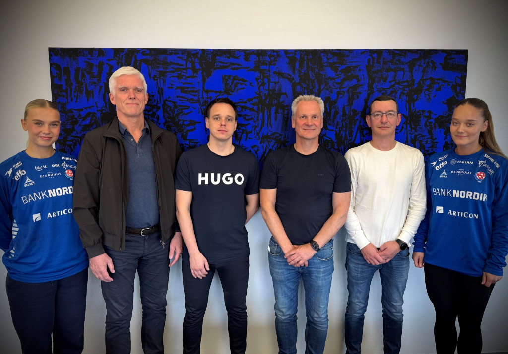 Jón Sigursson, stjóri, Niclas Joensen, fíggjarstjóri, Sunnvard Andreasen, framleiðsluleiðari og Andrass Thomsen, stjóri í Hondbondsambandi Føroya, hittust í farnu viku í høvuðsætinum hjá Articon á Hjalla og skrivaðu undir nýggja sáttmálan. Høvið var eisini at landsliðsleikararnir Janu Mittún og Elsu Egholm vóru hjástaddar. Tær vóru í Føroyum til landsliðsvenjingar.
