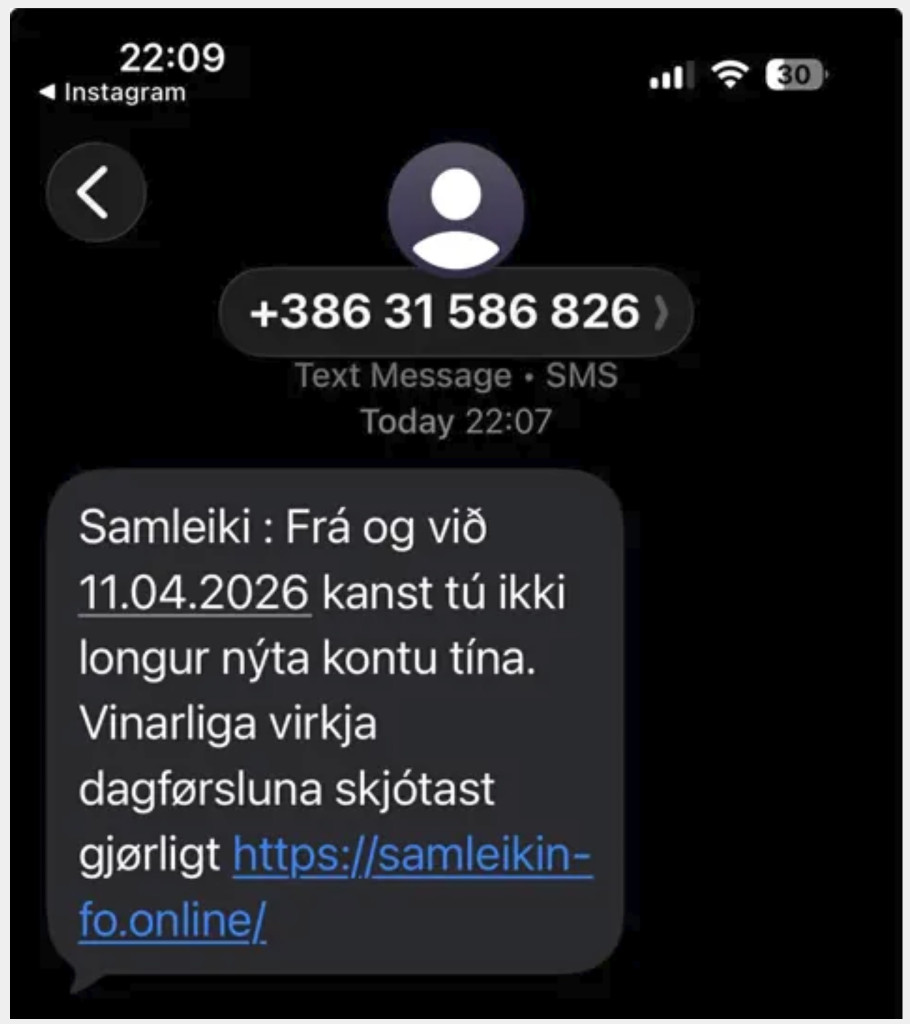 Aftur nú herja følsk SMS-boð í Føroyum við tí endamálið at royna at lumpa pengar frá fólki. Tey síggja út at vera frá Samleikanum, men tað eru tey ikki, staðfesta tey í talgildu Føroyum