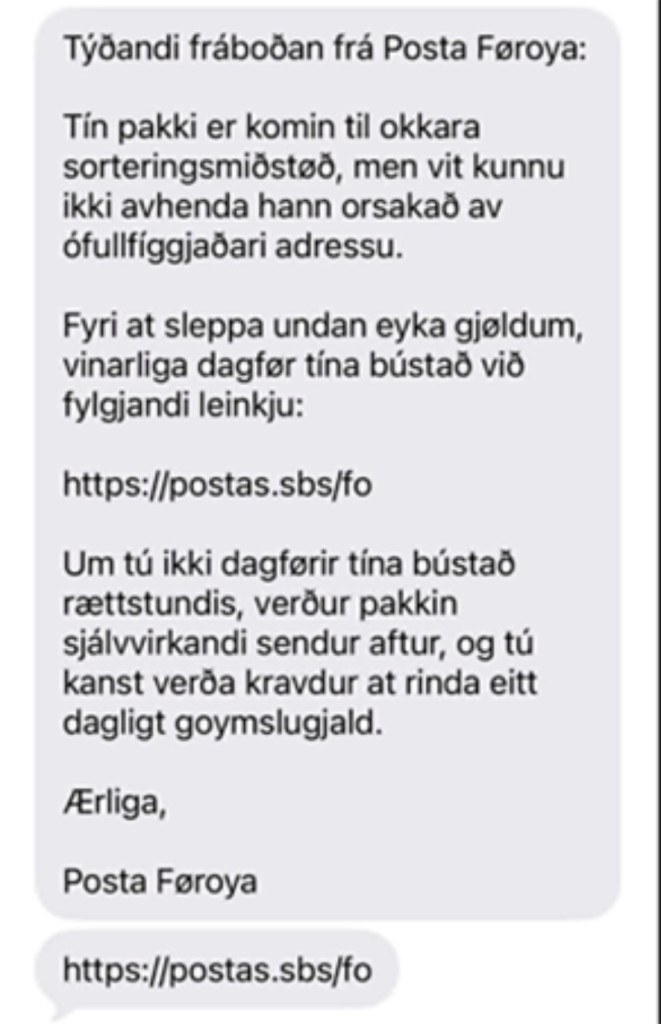 – Í løtuni herjar eitt stórt og álvarsamt álop í Føroyum á SMS-boðum og teldupost.