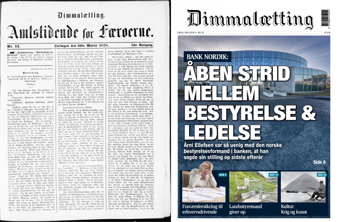 - Vi har overvejet at gå hele vejen og ændre navnet til Amtstidende for Færøerne, men det er nok at strække den lige lovlig langt. Færøerne er ikke et amt længere, så vi beholder navnet. Men situationens alvor gør, at Dimmalætting fra i dag igen bliver skrevet på dansk. Eller også på dansk, fordi vi skriver også fremover på færøsk.