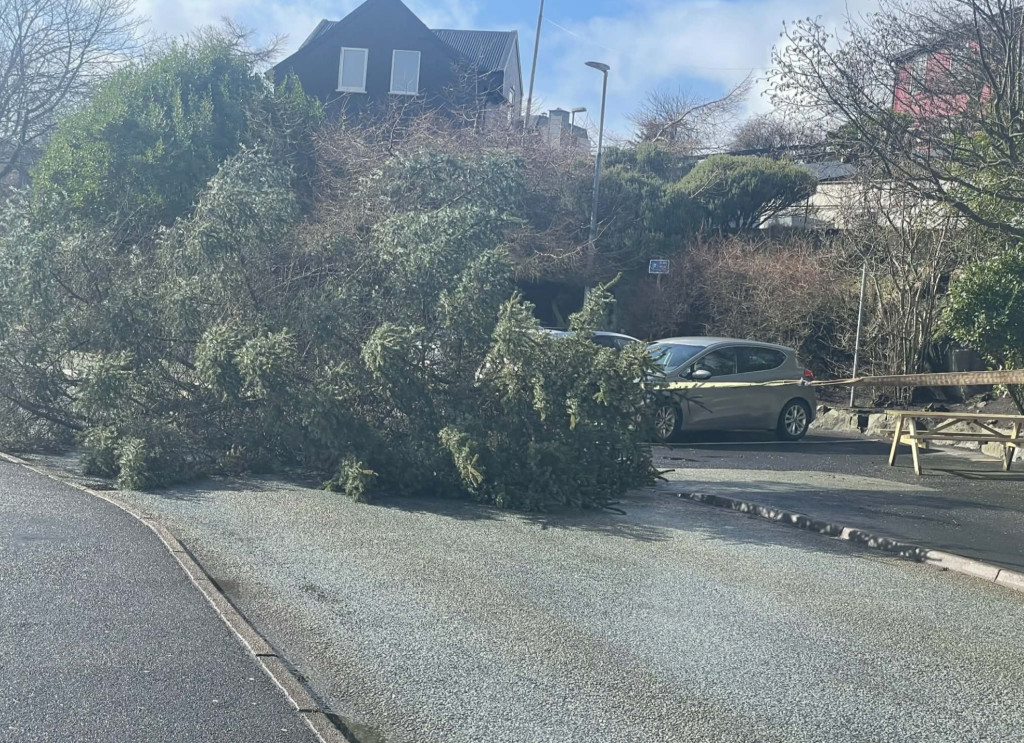 Í dag hevur býargartnarin í Havn verið niðri í Skálatrø har hann hevur kappað eitt stórt træ niður.