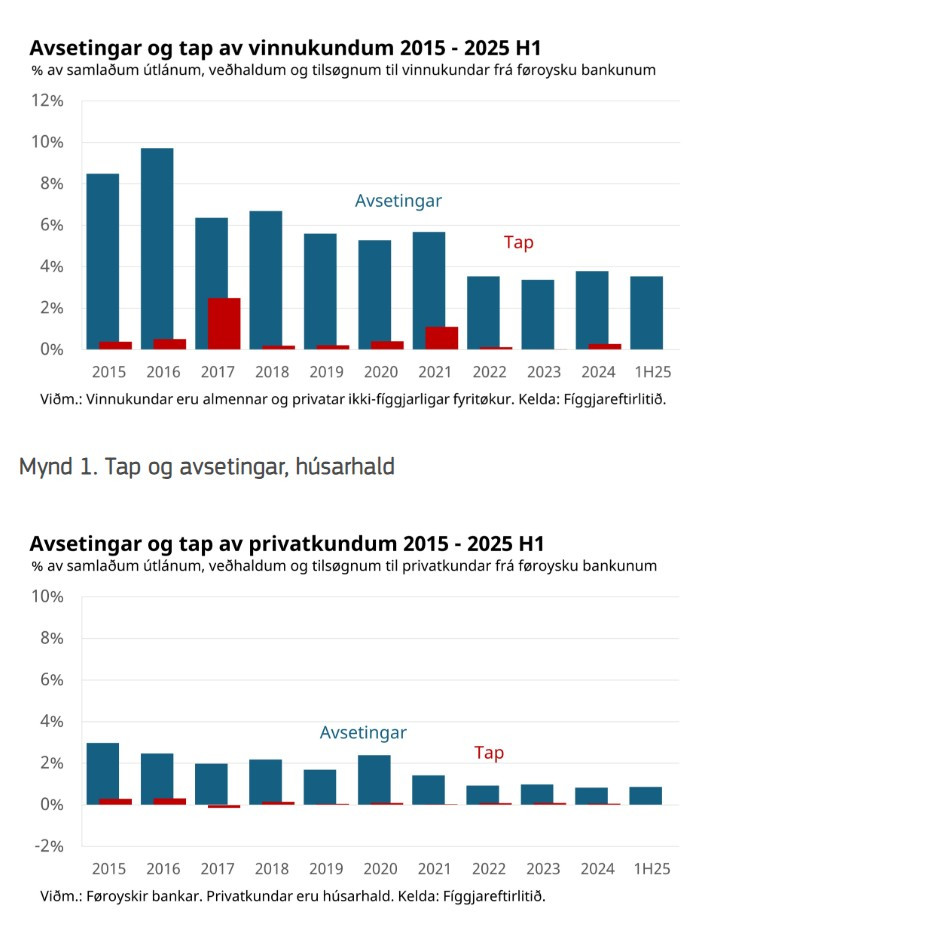 Fyri húsarhaldini hava peningastovnarnir sett 0,9% av ímóti tapi burturav samlaðu útlánunum í 2025, sí mynd 2.