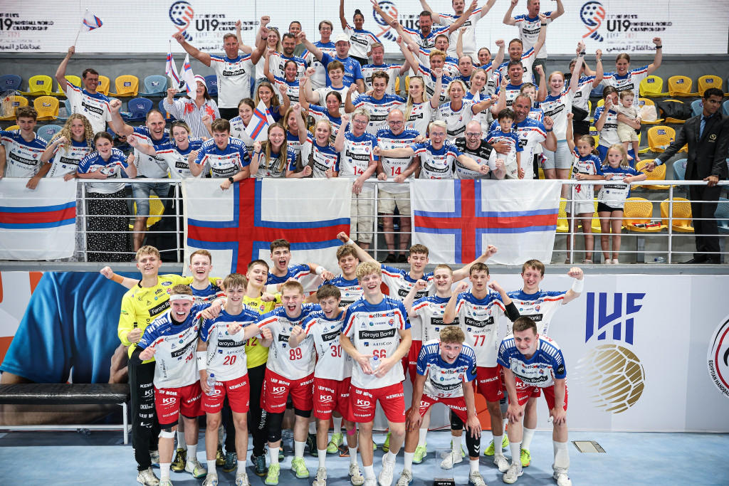 Føroyar vunnu sær í dag javnleik, 26-26, móti Argentina í seinastu sekundunum og vunnu harvið bólkin í millumrunduni í HM President´s Cup og koma harvið at spæla um 17. – 20. pláss av 32. Hesir dystirnir verða hósdagin og fríggjadagin.