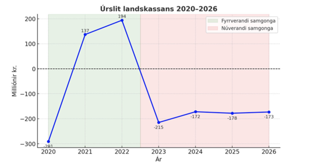 Avlopini, sum vit høvdu undanfarna valskeið, eru etin upp. Gongdin er vend – frá avlopi til dundrandi undirskot. Og ikki bara einaferð, men ár eftir ár. Ja, enn eitt dundrandi undirskot á fíggjarlógini.