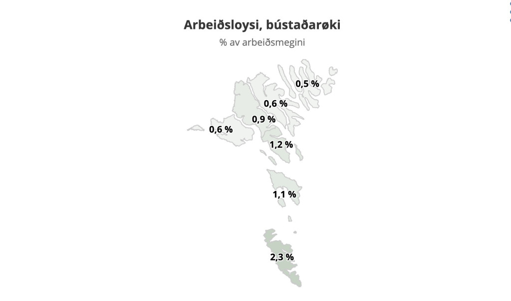 Her sæst, hvussu tey ymsu økini í landinum eru rakt av arbeiðsloysi