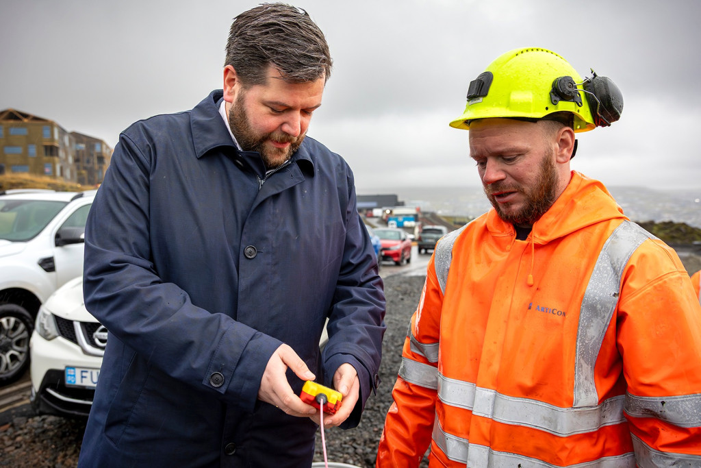 Í dag varð fyrsta skotið í fyrireikingunum til nýggja sambýlið við Rygsá á Argjum latið. Tað var Eirikur í Jákupsstovu, landsstýrismaður í almannamálum, ið trýsti á knøttin.