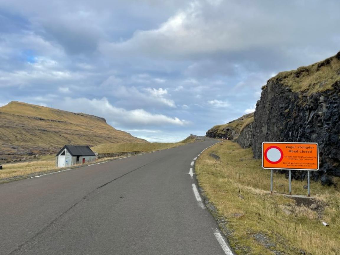 Vegurin um Eiðisskarð er stongdur fyri almennari ferðslu fram til 1. mai í 2023.
