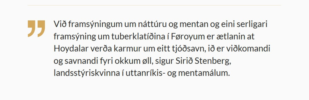 Við at leggja Tjóðsavnið í Hoydølum verður søguliga økið varðveitt og miðlað, og upprunaligu dygdirnar í økinum kunnu koma okkum øllum til gagns. Friðaðu bygningarnir, sum hoyra til Sanatoriið, studentaskúlabygningurin og friðaða økið í Hoydølum kunnu gerast einastandandi karmur um fjølbroytta virksemið hjá Tjóðsavninum.