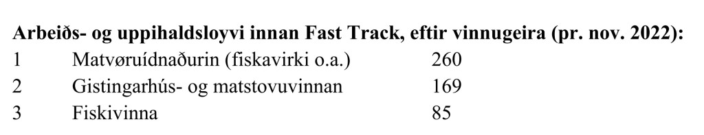 Her eru uppihaldsloyvi til flóttafólk úr Ukraina ikki tald upp í og tey eru eini 250 í tali.