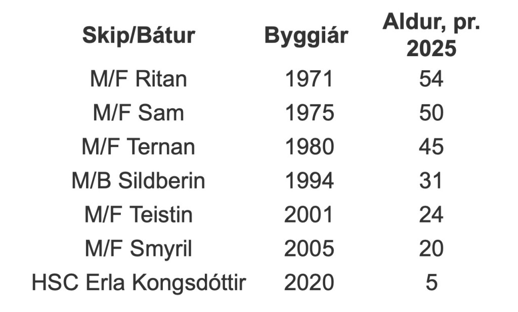 Hetta er kanska eisini fyri at vísa á, hvussu gomul skipini hjá Strandferðsluni eru. Sam er næstelsta skipið hjá Strandferðsluni, tí Ritan er eldri, hon er 54 ár.