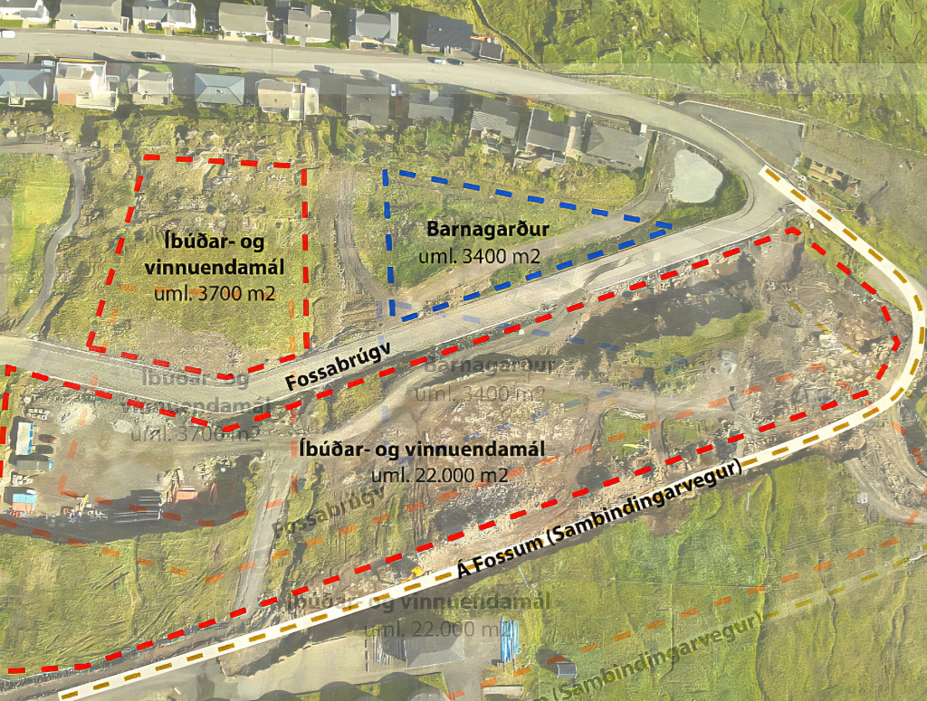 Talan er um eitt stórt byggilendi á samanlagt 29.200 m2, til blandað íbúðar- og vinnuendamál, ið kann lutast sundur í smærri byggiøkir. T.d. verður eitt byggiøki á 3.400 m2 útlagt til ein komandi barnagarð. Møguleikar eru fyri geirum millum byggiøkini, ið verða útlagdir sum grøn fríøkir, trivnaðarøkir og bindilið millum komandi býlingarnar.