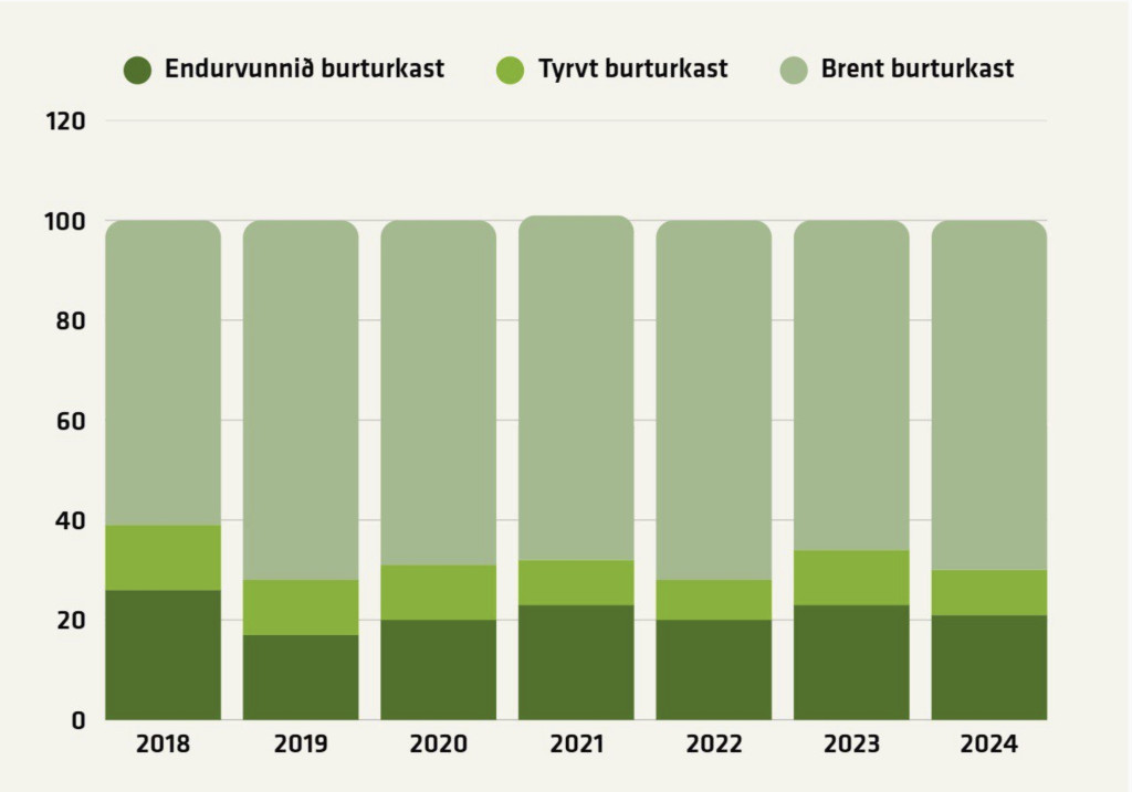 Enn er tó langt á mál, tí hóast nøgdin á burturkasti, sum verður endurvunnin, er vaksandi, veksur eisini nøgdin av burturkasti, sum heild, sigur Umhvørvisstovan.