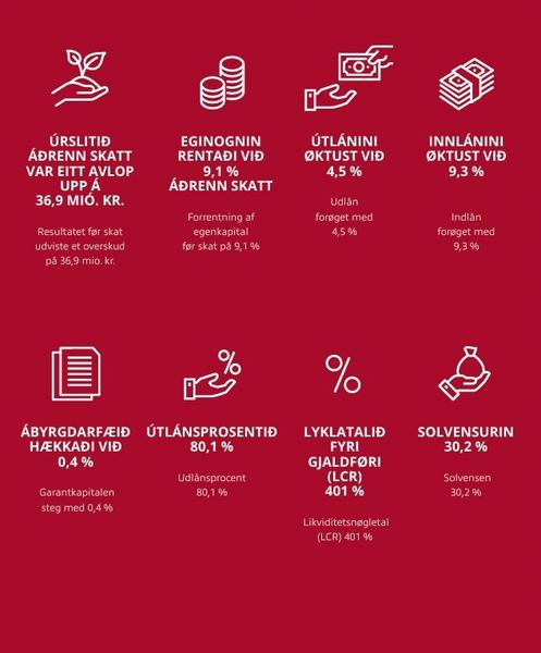 Útlánini øktust úr 2.248 mió. kr. upp í 2.349 mió. kr., sum svarar til ein vøkstur upp á 101 mió. kr. ella 4,5%.
