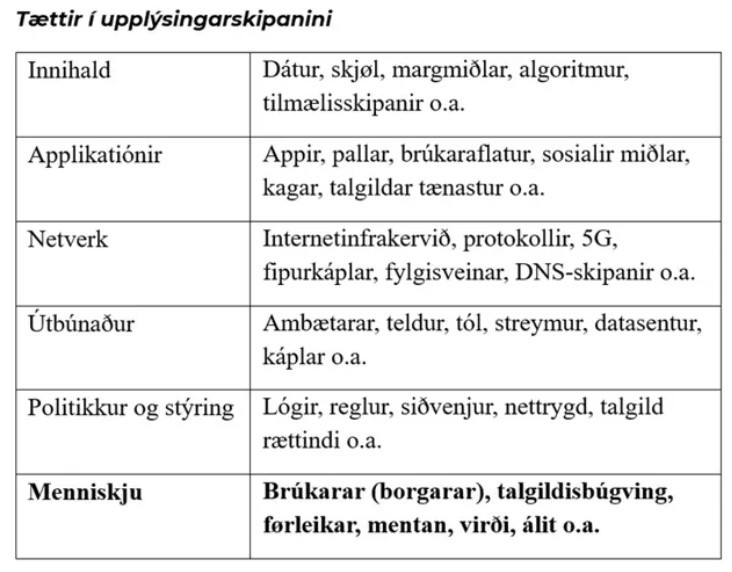 Upplýsingarskipanin skal síggjast sum ein heild, har menniskjaligi tátturin hevur ein grundleggjandi leiklut, sum lýst í myndini omanfyri.