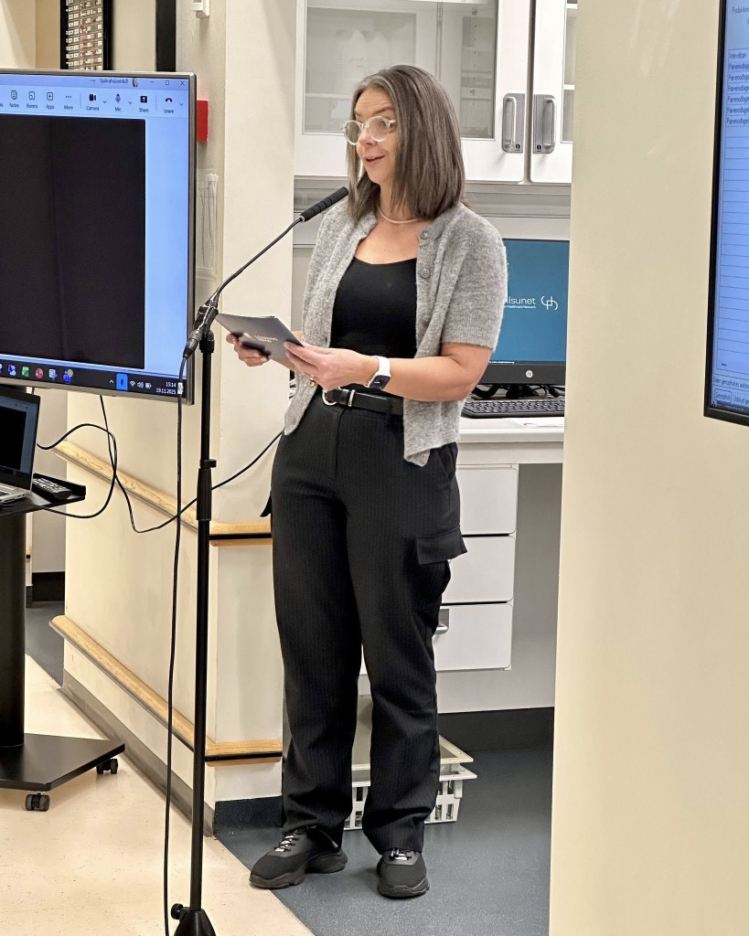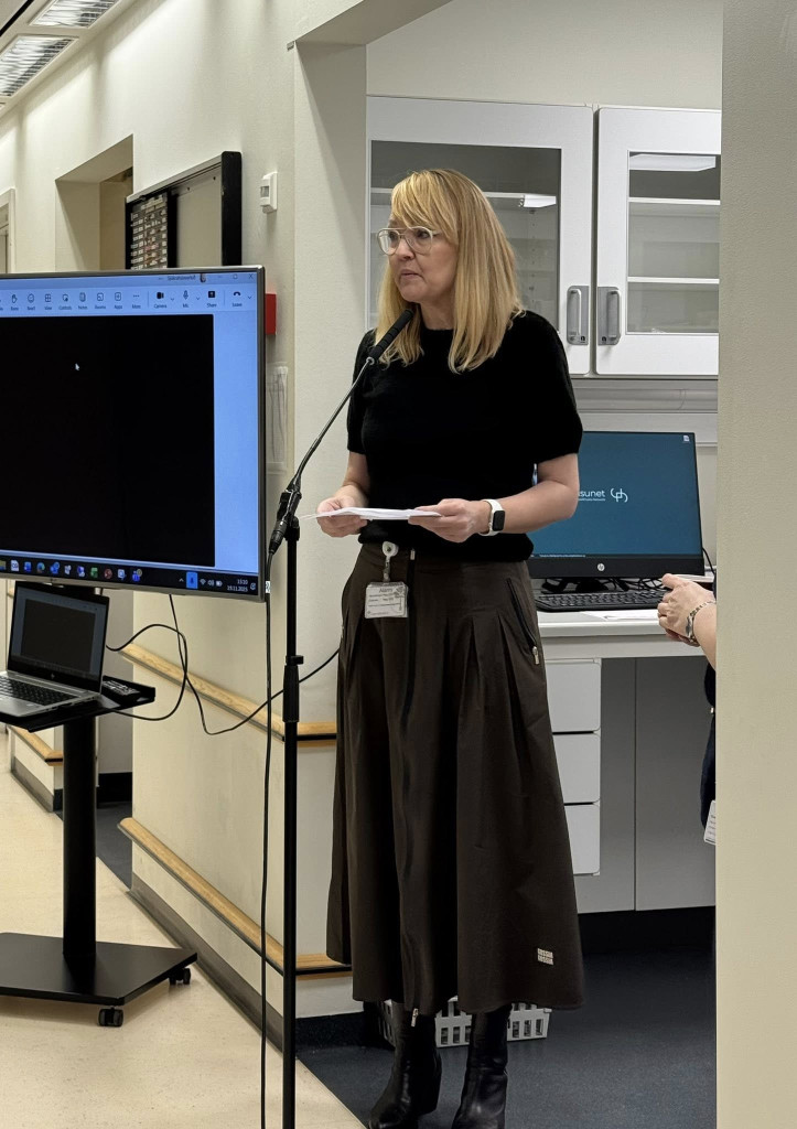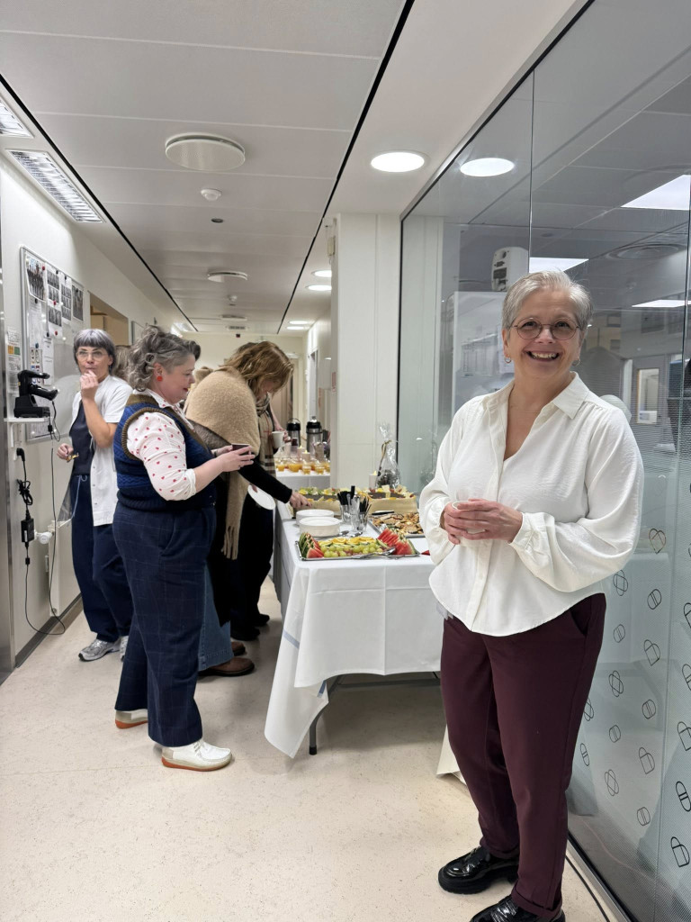 Til hátíðarhaldið hildu Gunnvá Guttesen, varastjóri, Ann E. Østerø, depilsleiðari á Diagnostiska depli, Birita K. Samuelsen, leiðandi bioanalytikari, og Jan Rasmussen, depilsleiðari á Medisinska depli, røður.