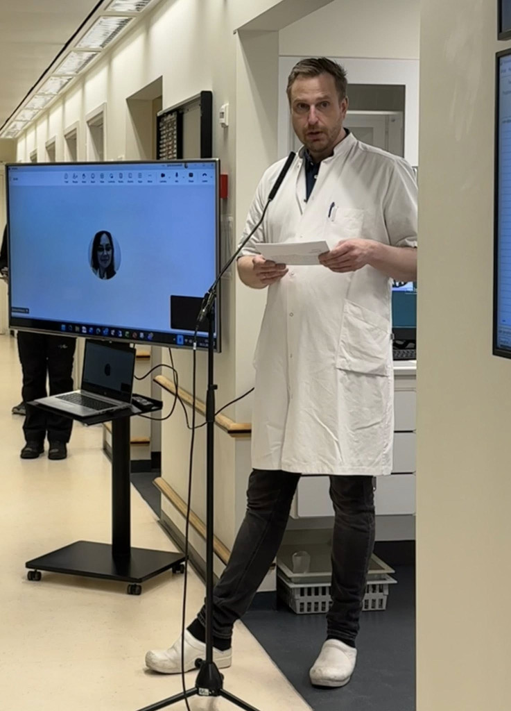 Hátíðarhald var á Rannsóknarstovuni mikudagin, tá nýggja rørpostskipanin á Landssjúkrahúsinum var víst fram.