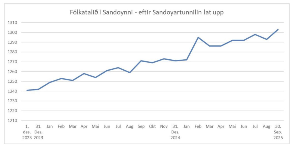 Gongdin í fólkatalinum í Sandoynni hevur eisini verið ein veg og tað er uppeftir, eftir at Sandoyartunnilin lat upp fyri ferðslu í desember í 2023.