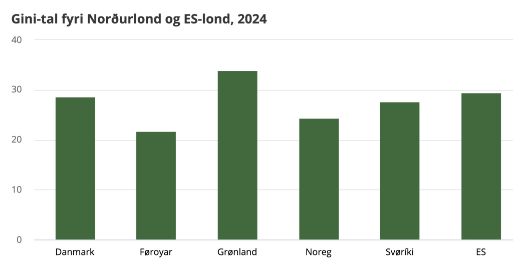 Tøl frá Hagstovuni vísa, at í fleiri ár er gini-talið í Føroyum kvinkað uppeftir, men í 2024, sum er tann nýggjasta uppgerðin, lækkaði tað aftur eitt vet.