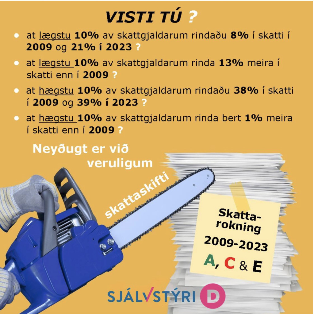 Eitt av høvuðsmálunum hjá Sjálvstýri er tí at arbeiða fyri einum rættvísari býtið av skattabyrðuni.