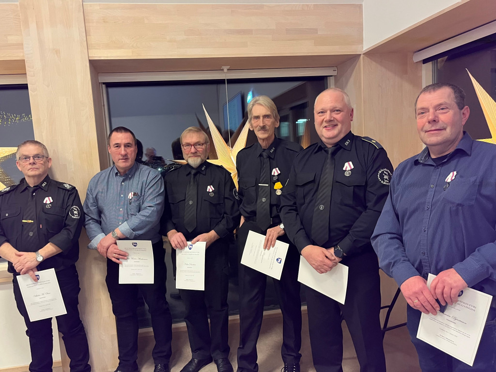 Eisini fingu sjey aðrir sløkkiliðsmenn í SKS silvurheiðurstekin og skjal, har Eirikur í Jákupsstovu, núverandi landsstýrismaður, skrivar: ”Sum landsstýrismaður fegnist eg um, at tú ósjálvsøkin og trúfastur hevur tænt føroysku tilbúgvingini”.