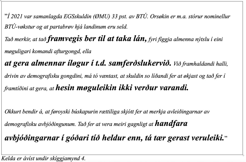 Skíggjamynd 4: Heimasíða Landsbankans, 2024: https://www.nationalbanken.dk/da/viden-og-nyheder/publikationer-og-taler/arkiv-publikationer/2023/faeroesk-oekonomi-hoejkonjunktur-og-voksende-reformbehov.