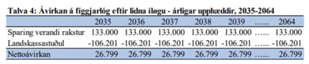 Sí ritmyndina, ávirkan á fíggjarlógina, niðanfyri: