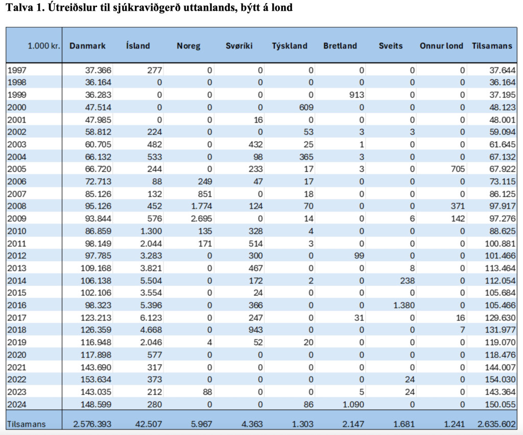 Súsanna Bertholdsen sigur, at talva niðan fyri vísir, hvussu nógv, tað hevur kostað at senda føroyskir sjúklingar til serviðgerð uttan lands - og tað sæst eisini, at tað bara er í heilt serligum førum, at sjúklingar verða sendir aðrastaðni.