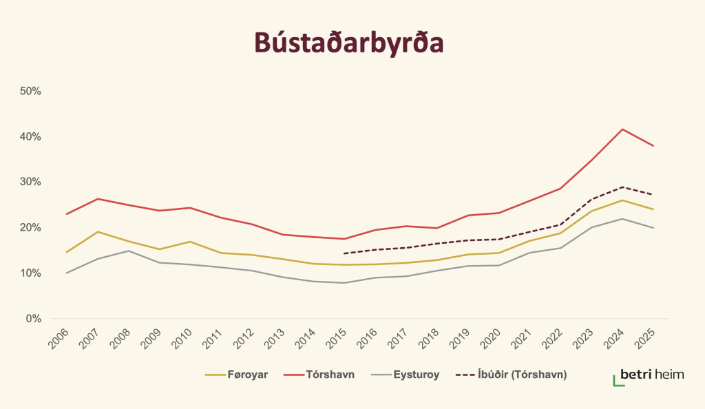 Tað er nakað minni enn í 2024, tá bústaðarbyrðan var 29 prosent.