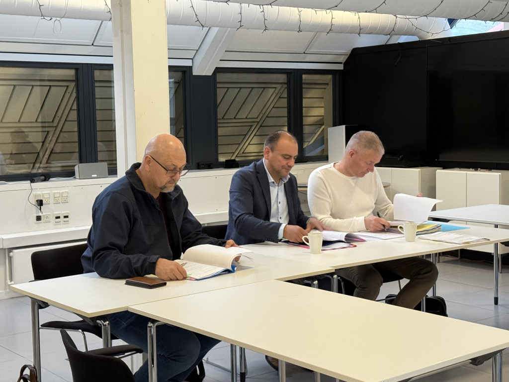Fyrireikandi fundur var í Fasta Gerðarrætti mikudagin. Úr vinstru er tað Annfinnur Garðalíð, formaður í Føroya Skipara- og Navigatørfelag, Arnfinn Bech, formaður í Maskinmeistarafelagnum, og Eyðbjørn Larsen, advokatur