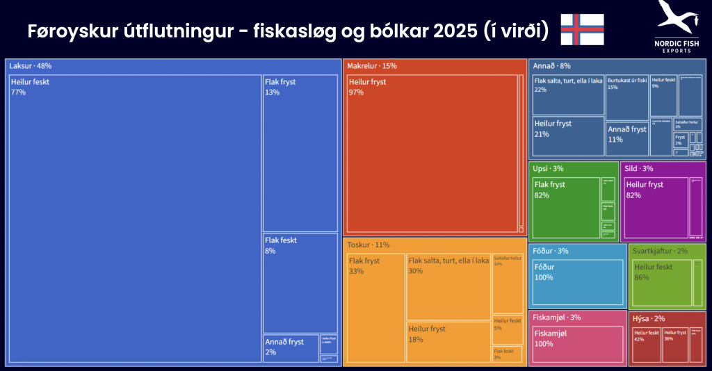 Frágreiðingin er at finna her: https://nordicfish.fo/wp-content/uploads/2026/02/Fiskautflutningur-Foroya-2025-1.pdf