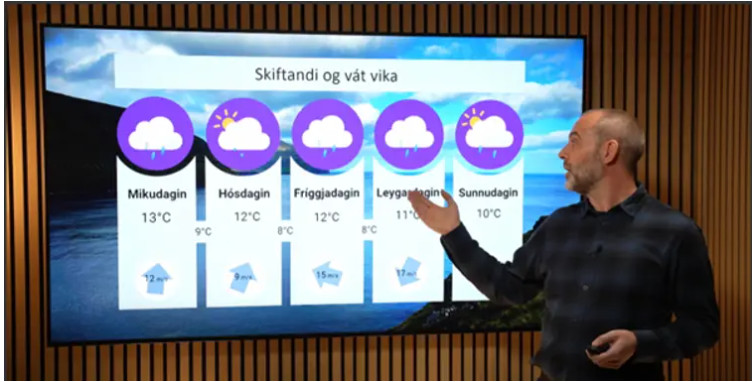 Bert eitt samdøgur seinni, tað var í veðursendingini týskvøldið, var sjón fyri søgn. Forsøgnin fyri vikuskiftið var broytt – og ikki bara eitt lítið sindur. Jari segði nú frá hvøssum vindi av landsynningi fríggjadagin, 15 m/s, og leygardagin upp ímóti skriði, 17 m/s, av landnyrðingi.