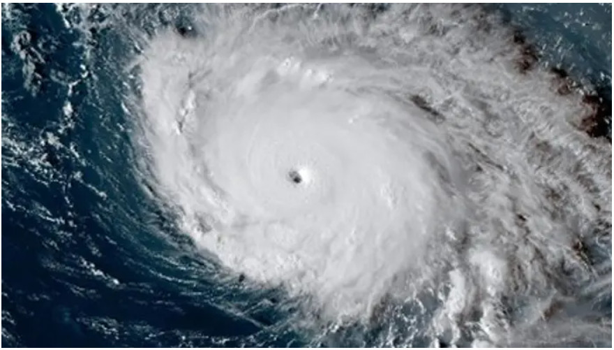 Tvær tropiskar ódnir á somu mynd. Taðhendir viðhvørt. Týsdagin var hendan myndin tikin av ódnunum Imelda (tv) og Humberto (th). Mynd: NOAA via AP.