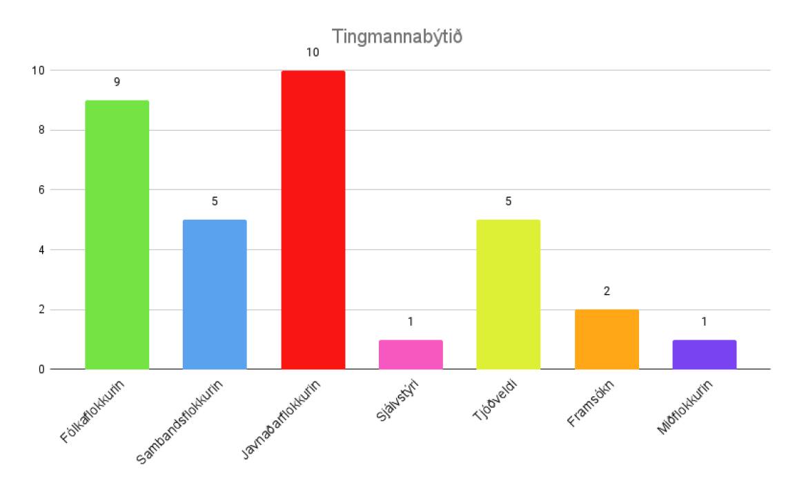 Javnaðarflokkurin er størsti flokkur við 29,03 prosentum av atkvøðunum og 10 tingfólkum.