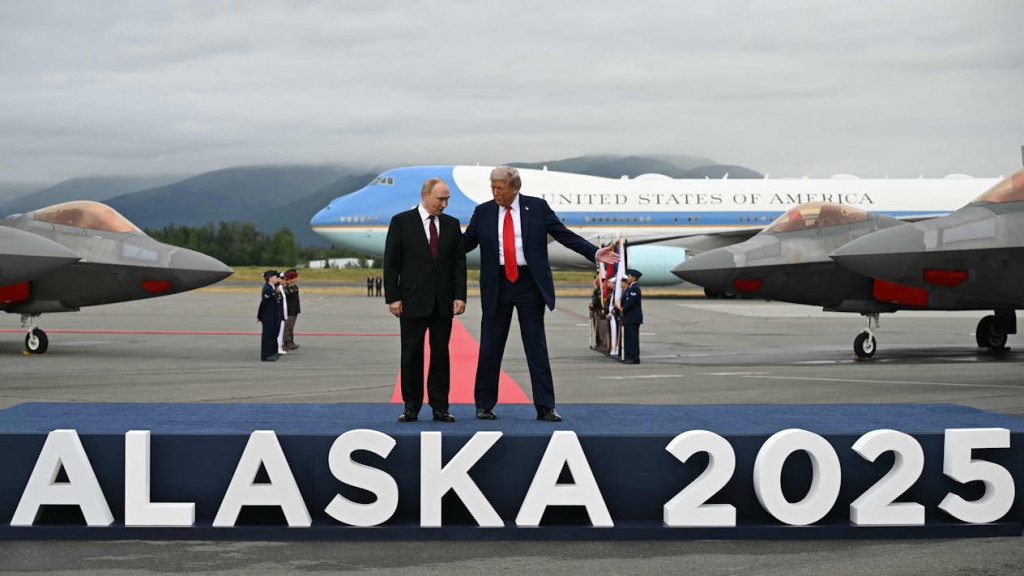Tíðindamaðurin hjá TV 2 skrivar, at fýra amerikansk jagaraflogfør fylgdu flogfarinum, sum bar Putin seinasta teinin til flogvøllin, sum eitt slag av heilsan til russiska forsetan.